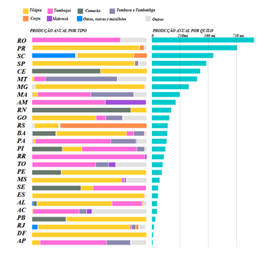 Figura 01: Produção de peixes, por espécies e por UF no Brasil, segundo o IBGE (2018).